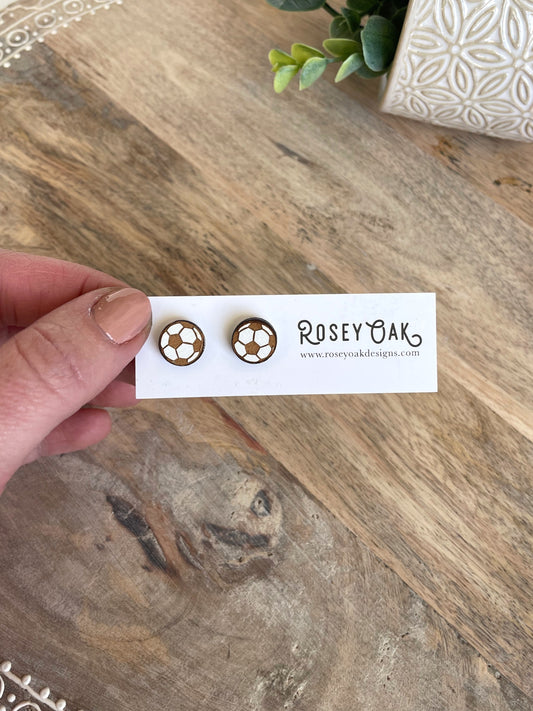 Soccer Engraved Wood Stud Earrings