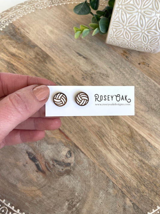 Volleyball Engraved Wood Stud Earrings