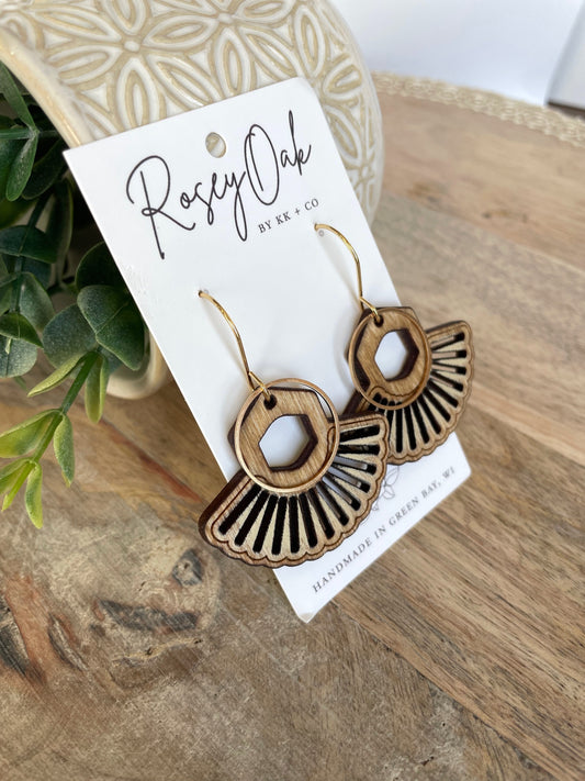 Boho Radial Hoop Wood Dangle Earrings