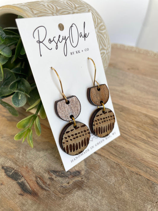 Circle Wood Engraved Dangle Earrings