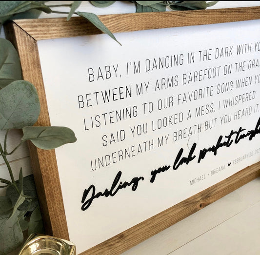 First Dance Lyrics - Framed Wood Sign, Personalized Wedding Gift