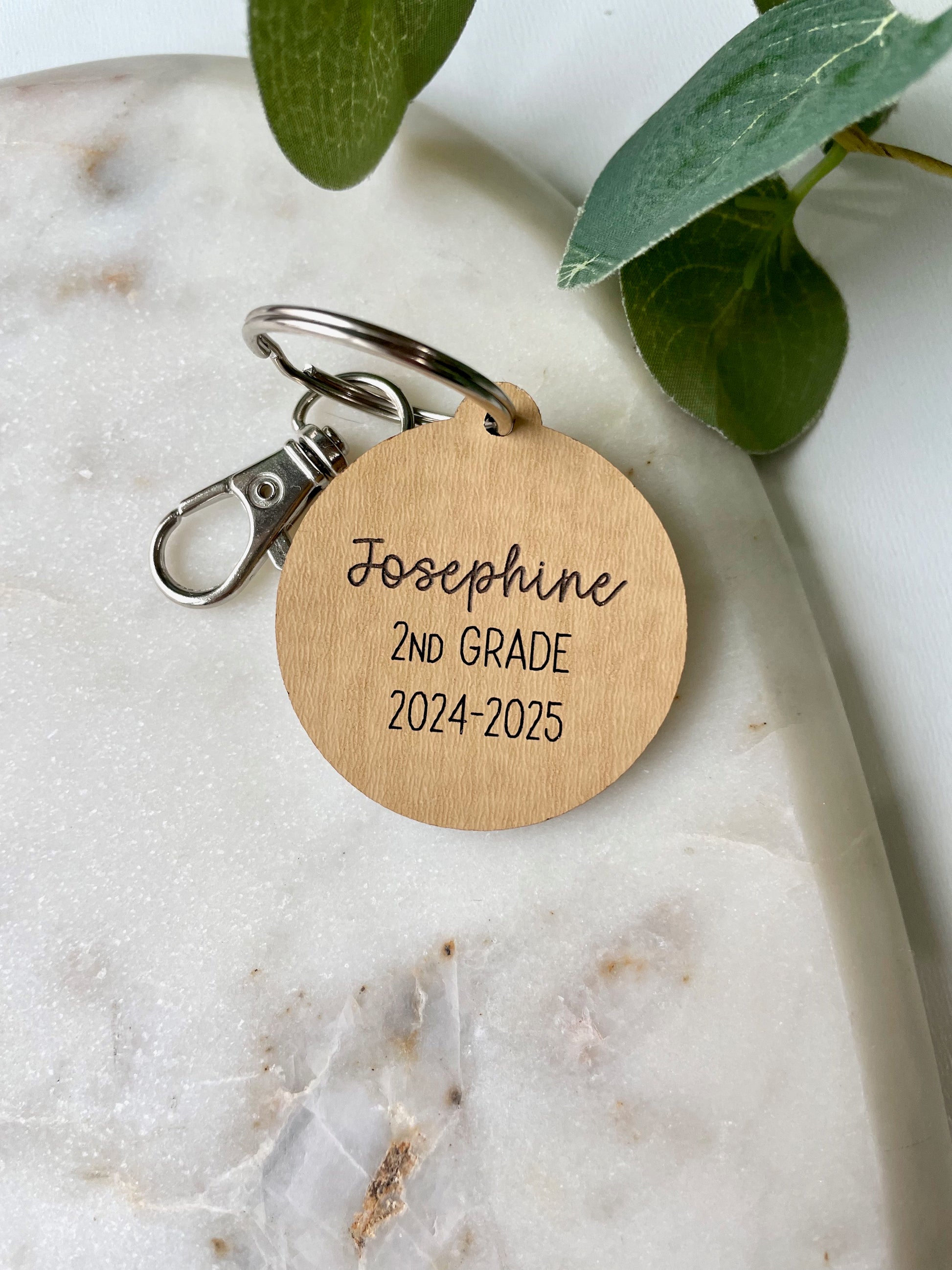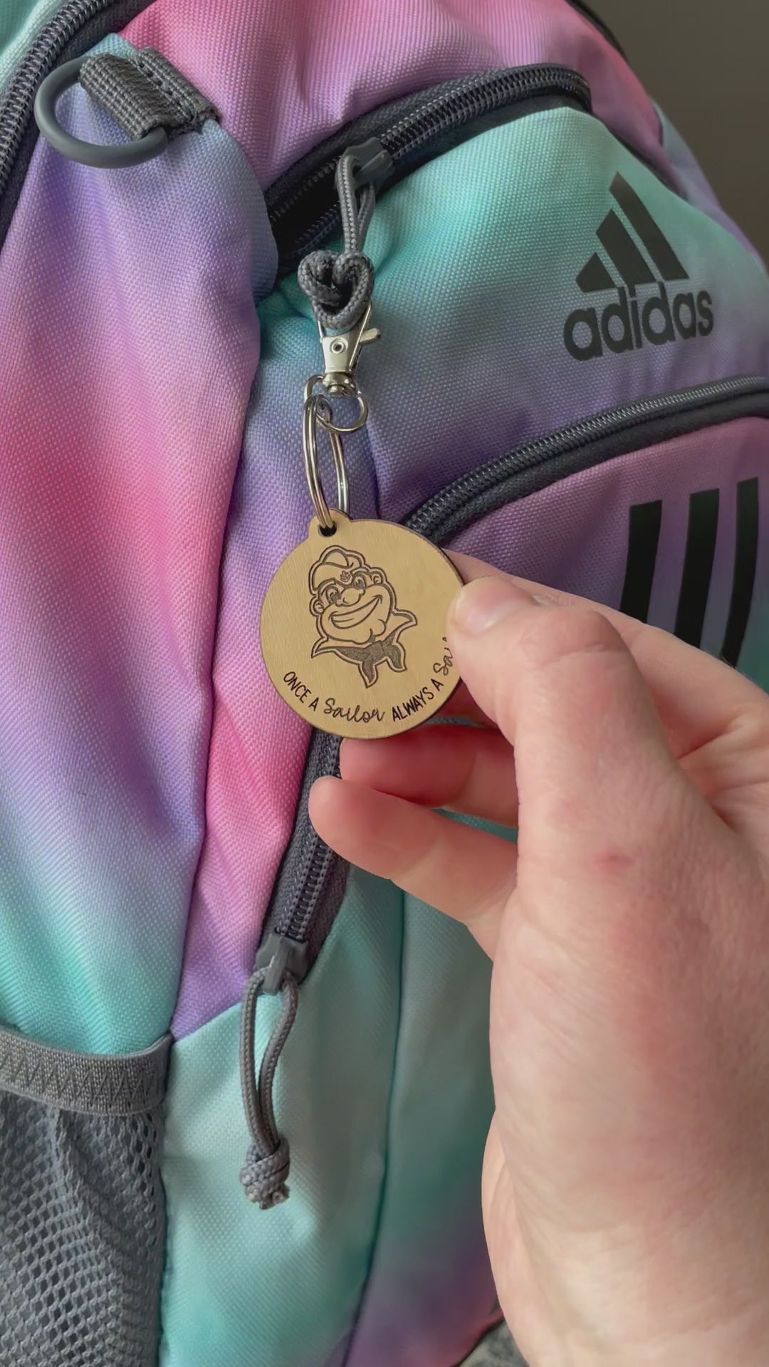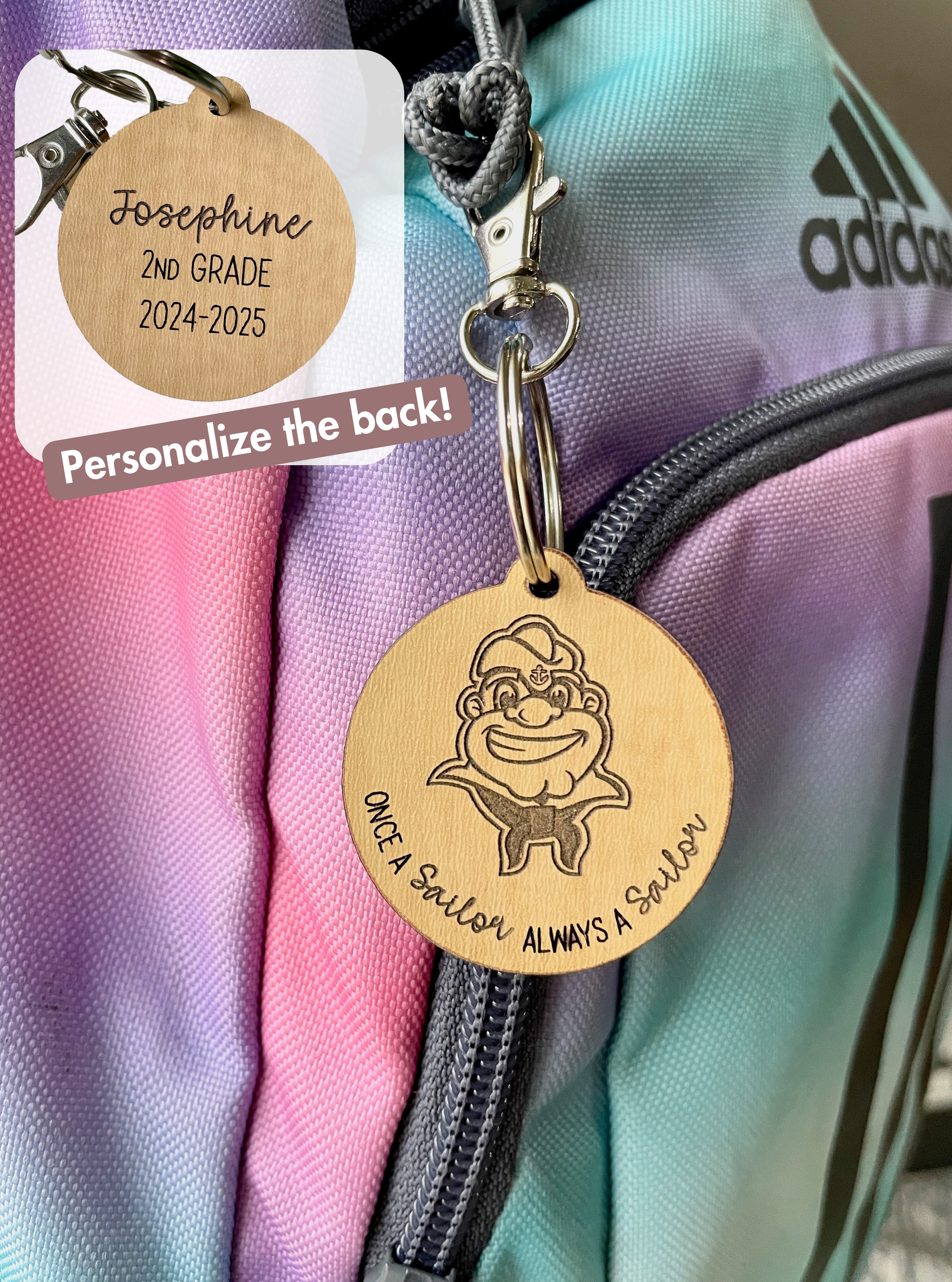 Elevate your student's backpack with our Bay Harbor wooden keychain. Made from birch wood, it features an engraved Bay Harbor Sailor logo and the timeless mantra "once a sailor, always a sailor". Add a personal touch with the option to engrave your child's name on the back. A must-have for any proud sailor.