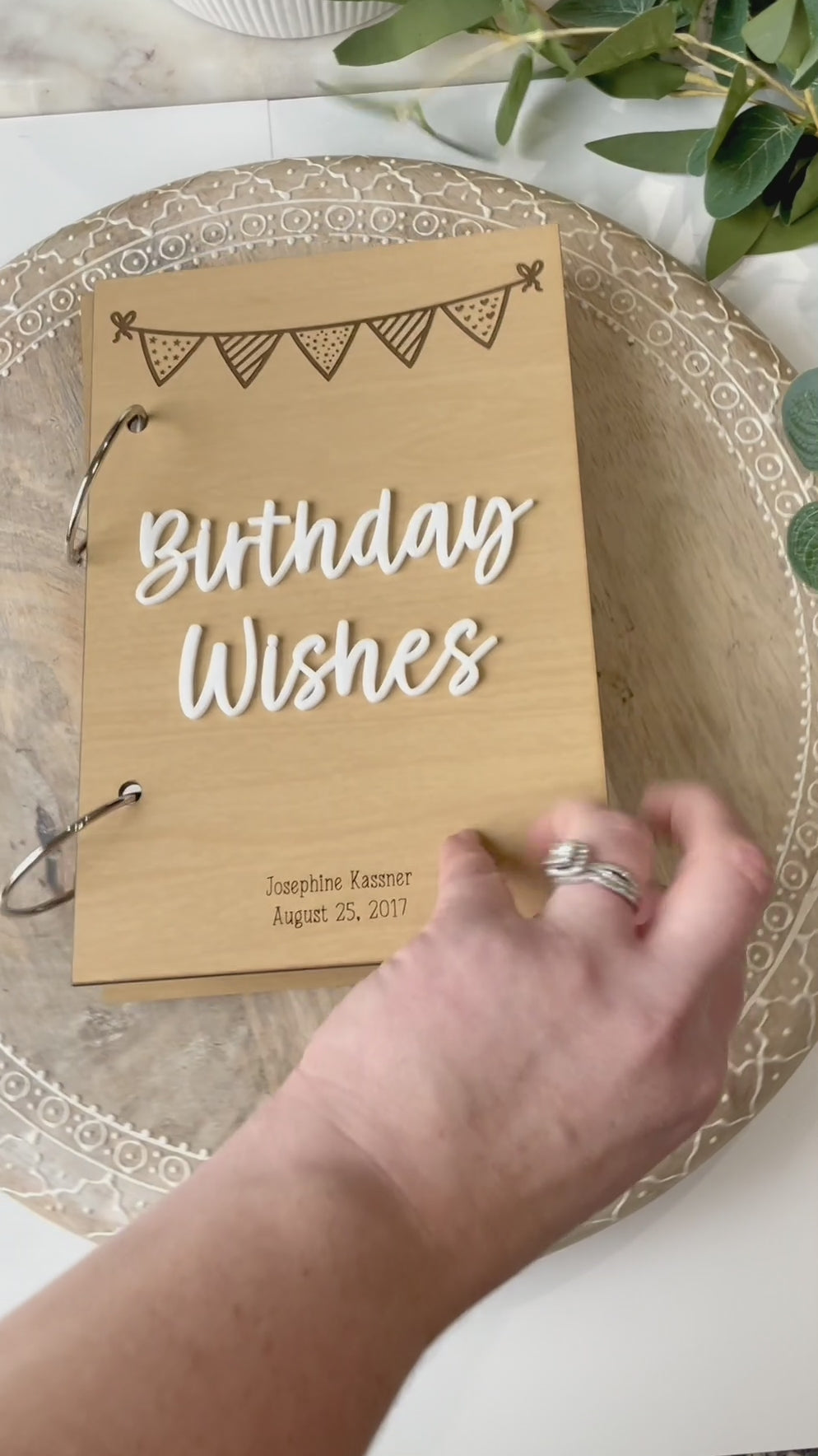 Our birthday card keepsake holder is the perfect way to organize and cherish those special birthday cards your kids receive. Made from durable wood, the holder is engraved with a name and birth date. Keep those heartfelt notes and memories safe in this beautiful keepsake holder.