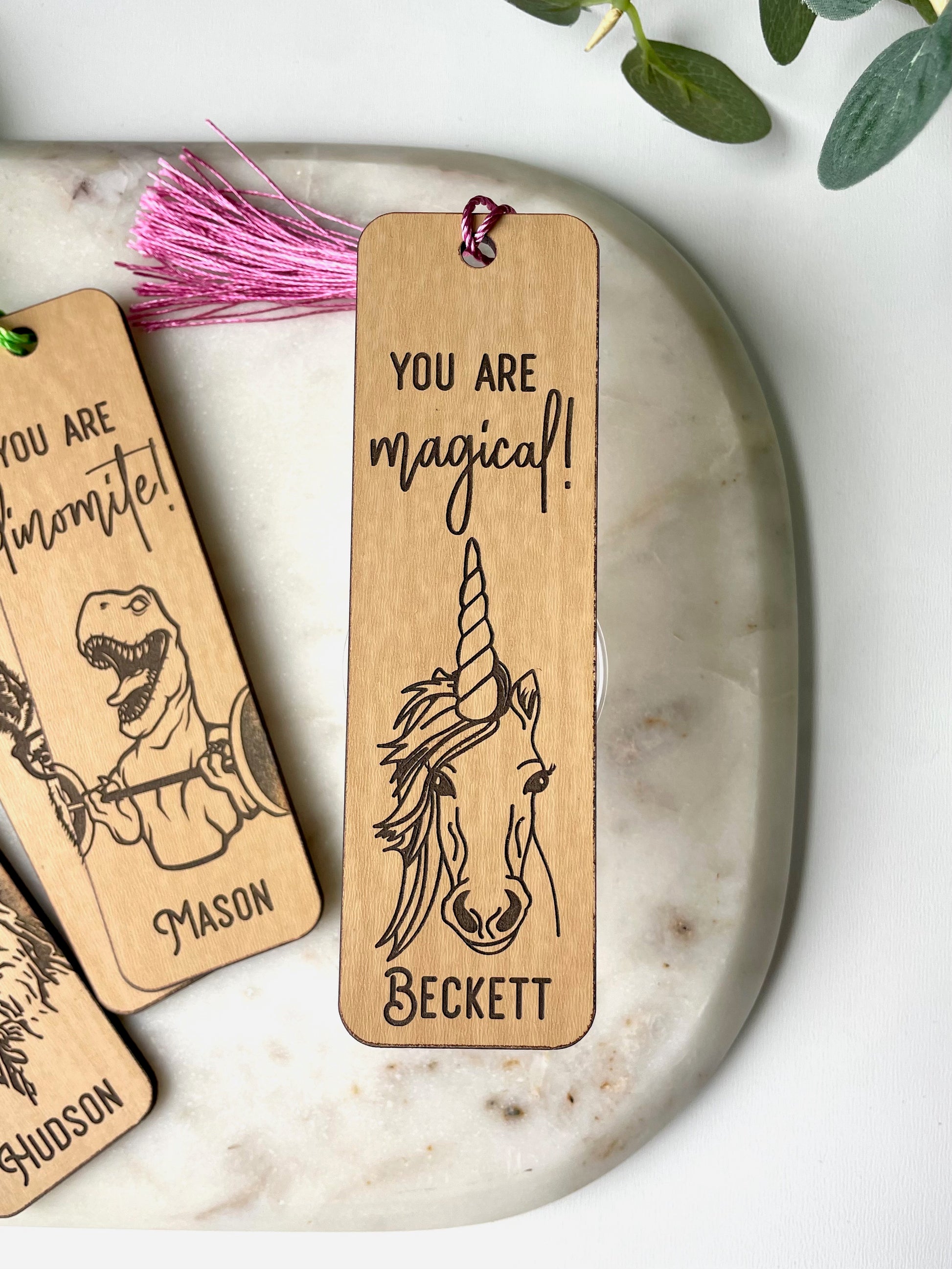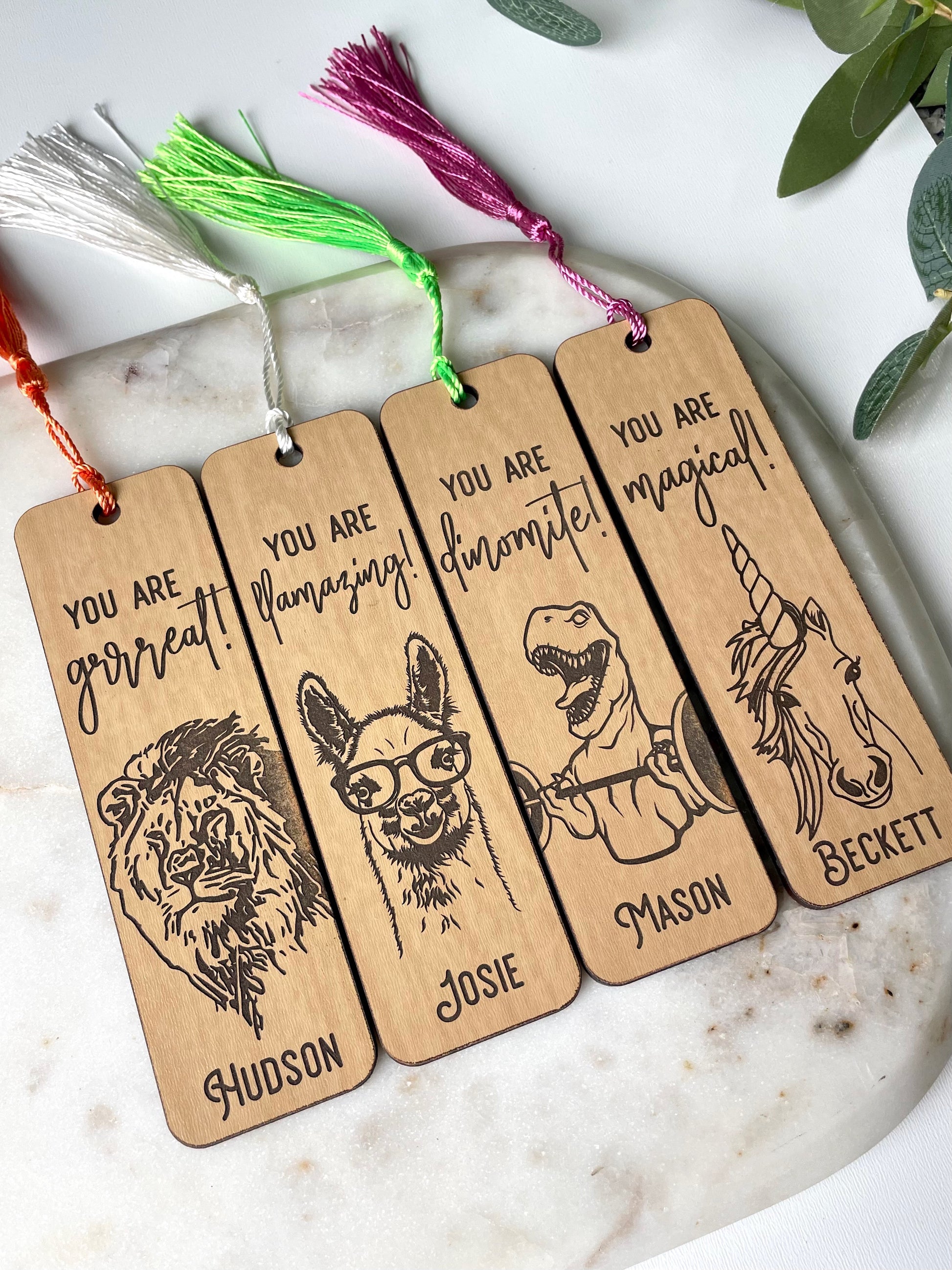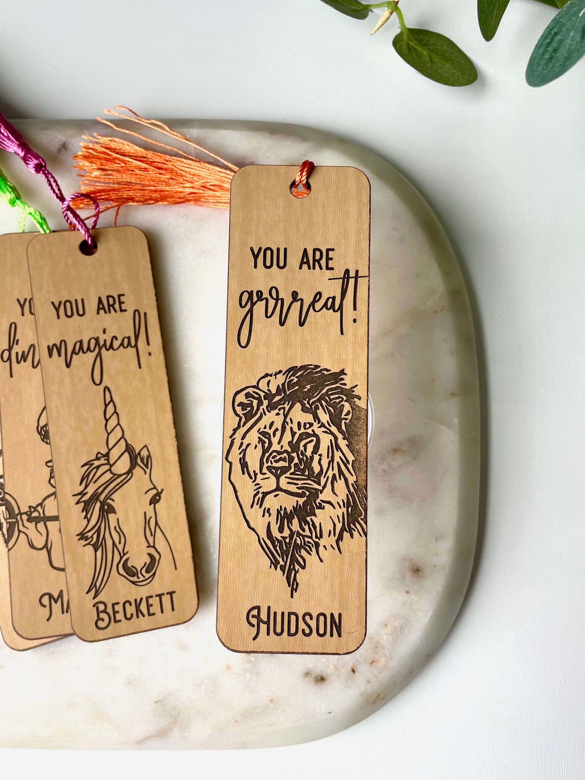 Add a personal touch to your kids reading with our engraved wood bookmarks! Laser engraved on birch wood and personalized with name on front. Our wood bookmarks make perfect gifts for young book lovers! Please type the name you'd like engraved on the bookmark in the personalization box.