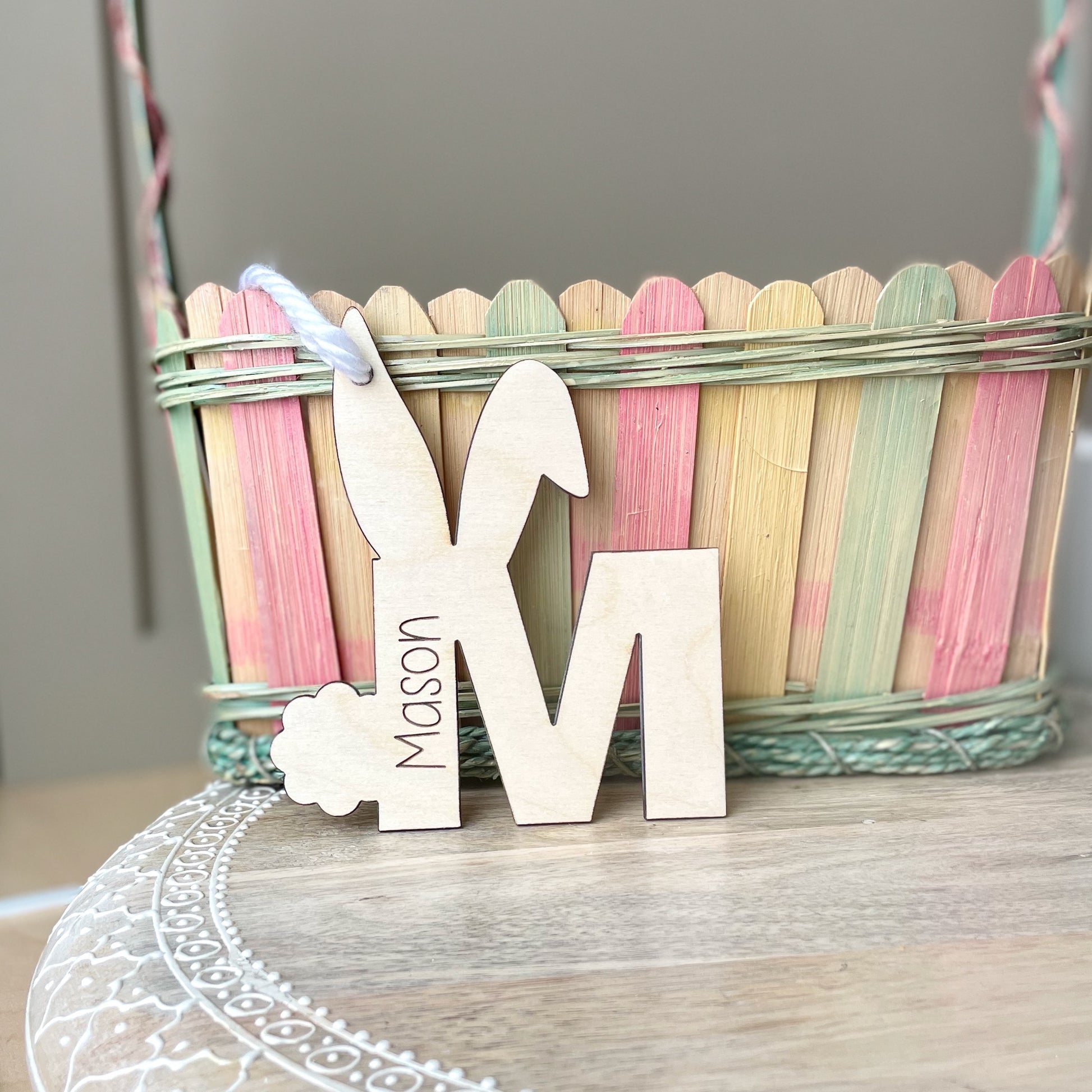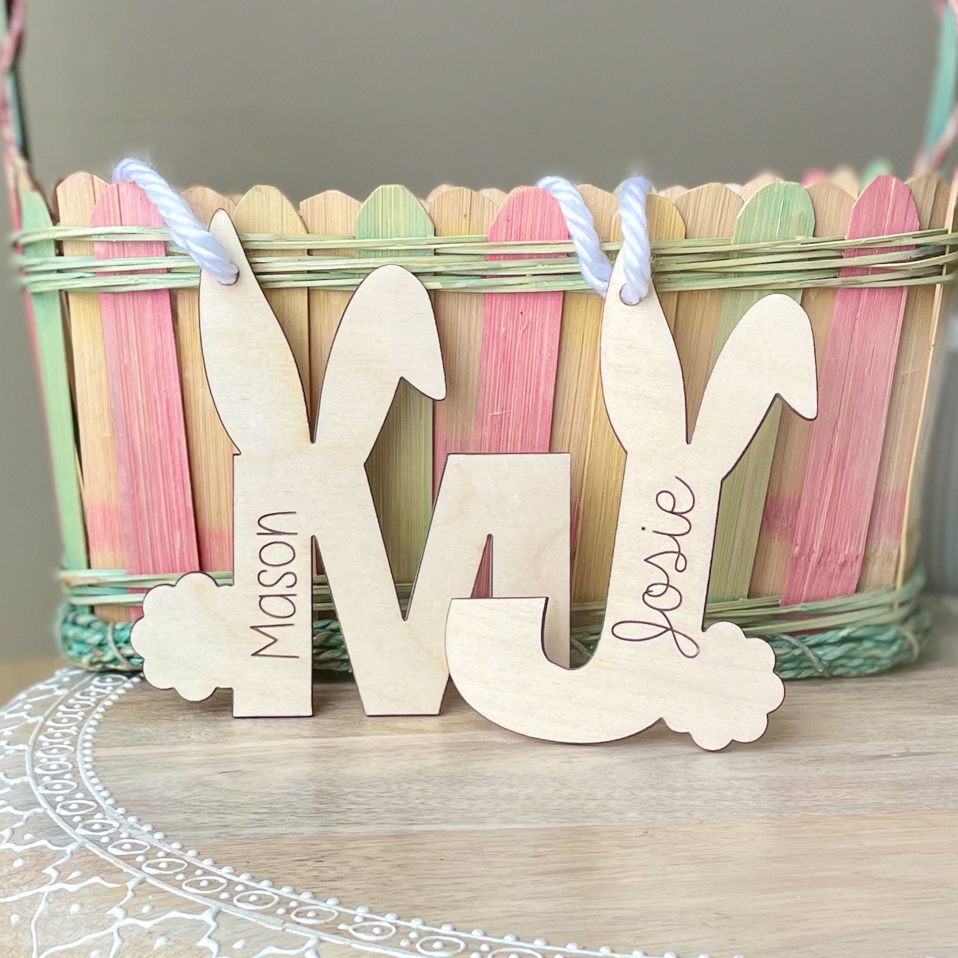 Our tags feature a name engraved into quality birch wood. Each tag comes with ribbon making them ready to hang on your basket!