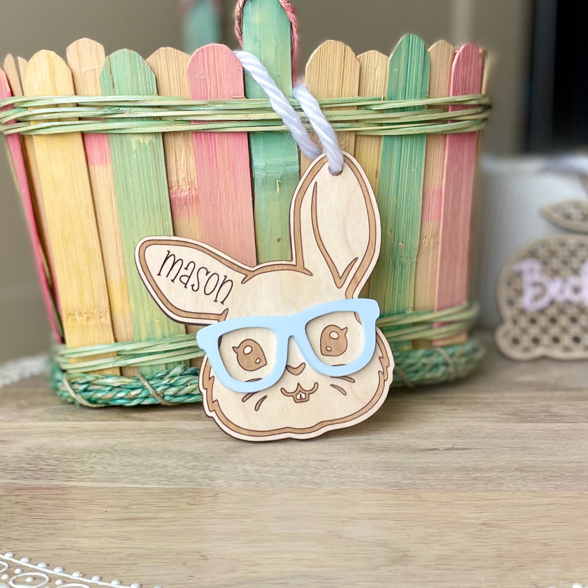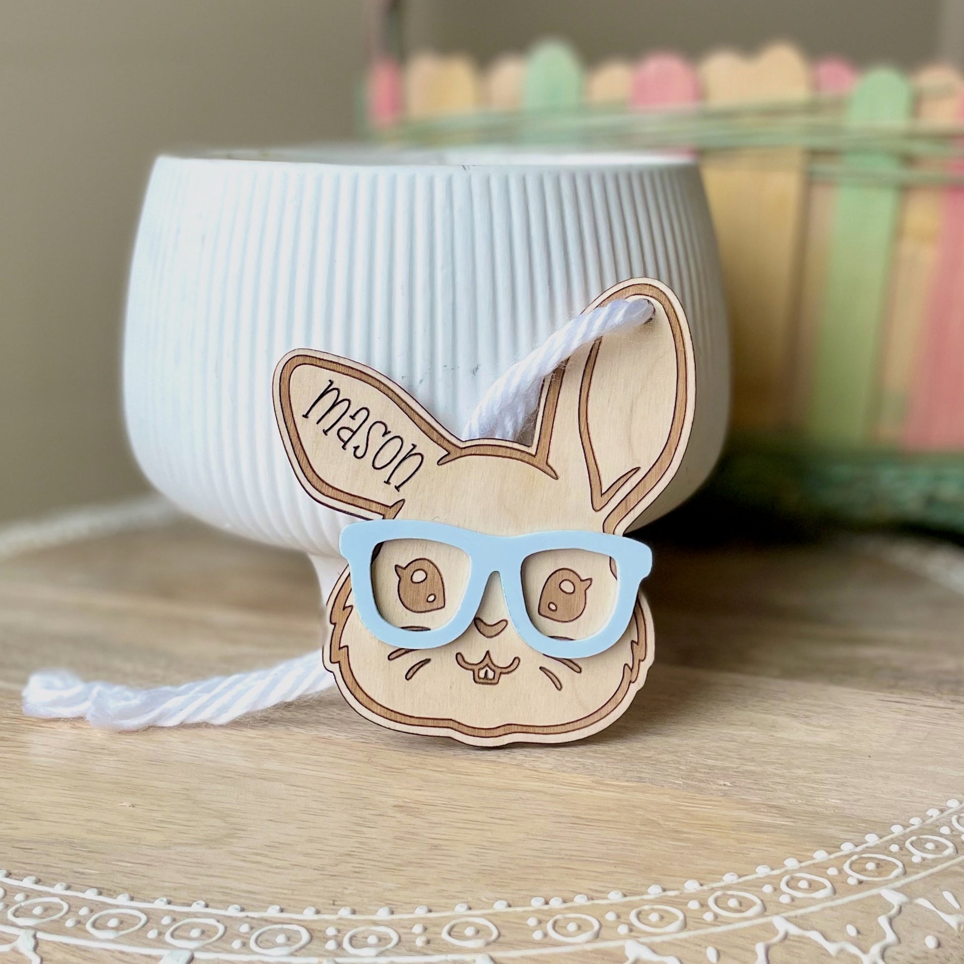 Easter Bunny with Glasses Personalized Basket Name Tag