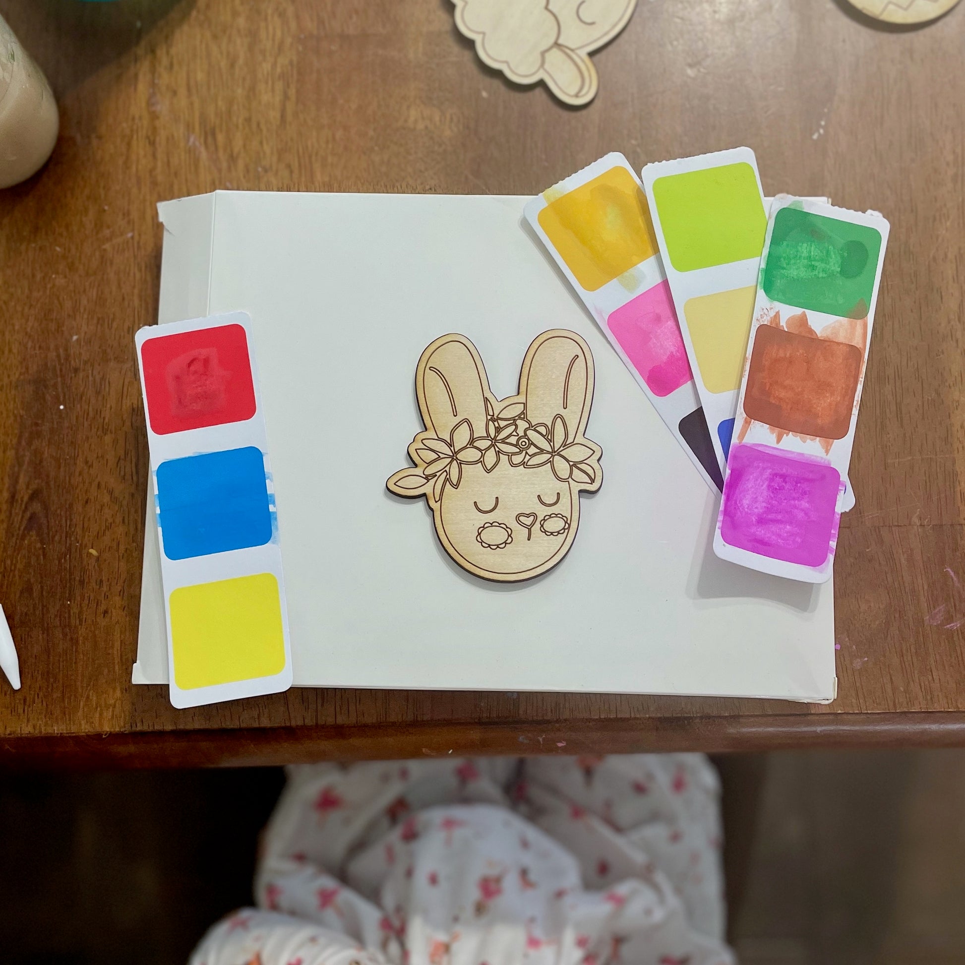 Every kit comes with a personalized name bunny, 12 watercolor paints and 1 paint brush.