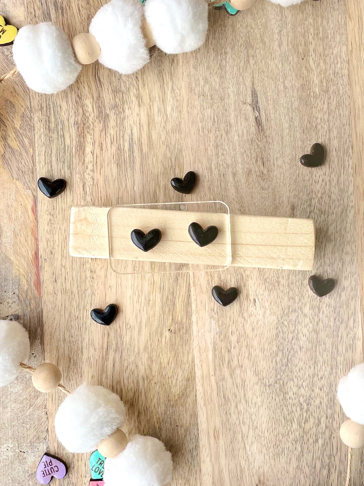 Mini Black Heart Laser Engraved Wood Stud Earrings