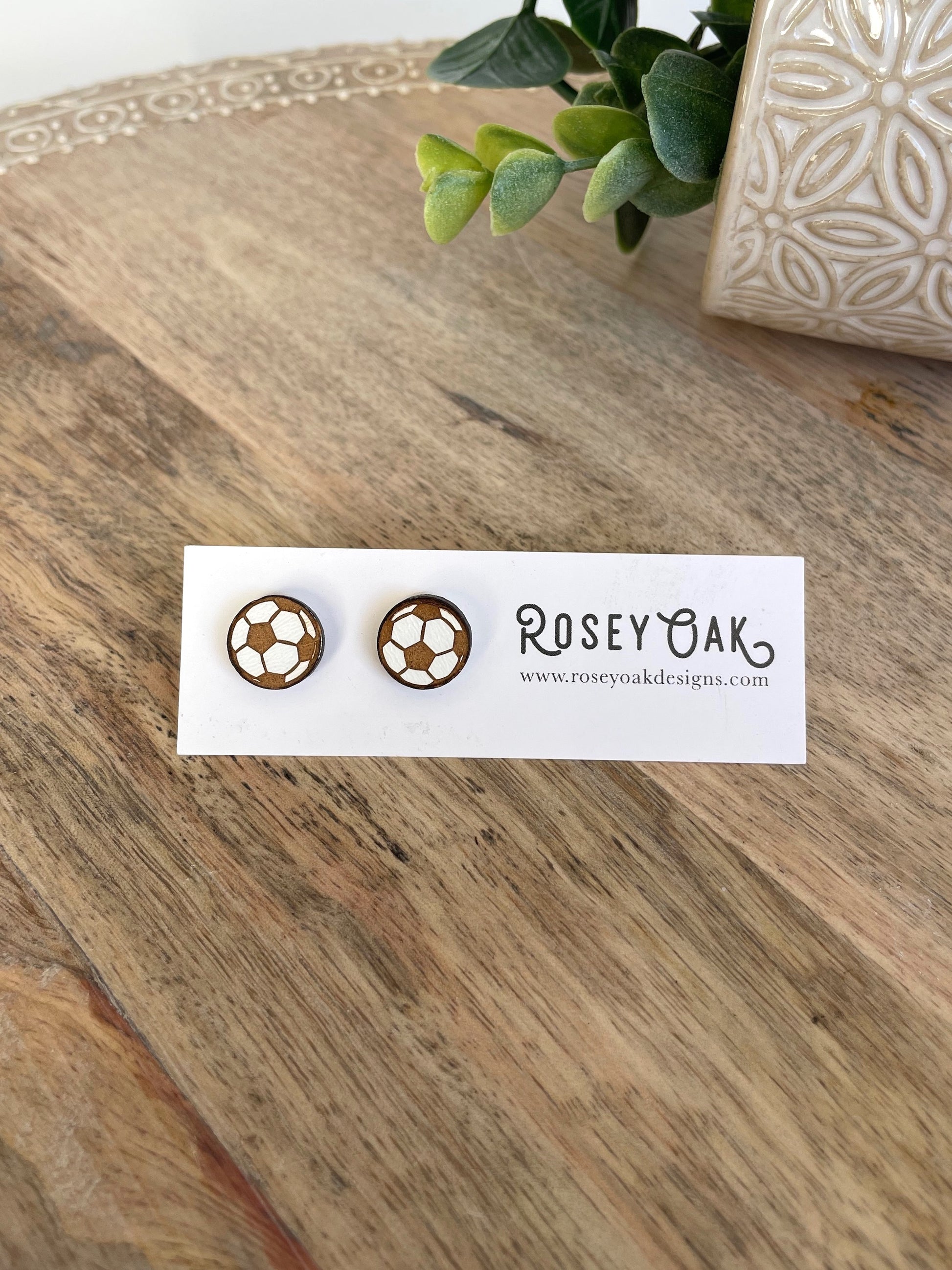 Soccer Engraved Wood Stud Earrings